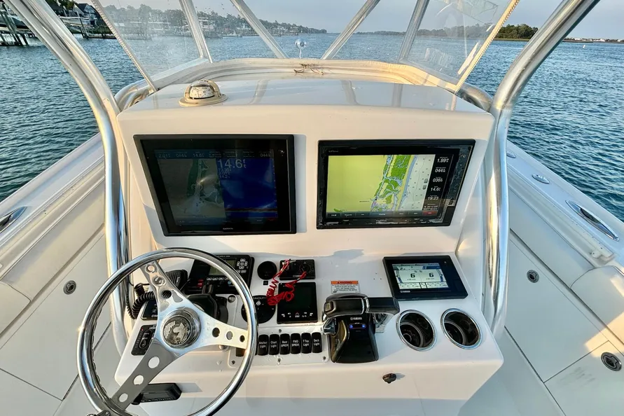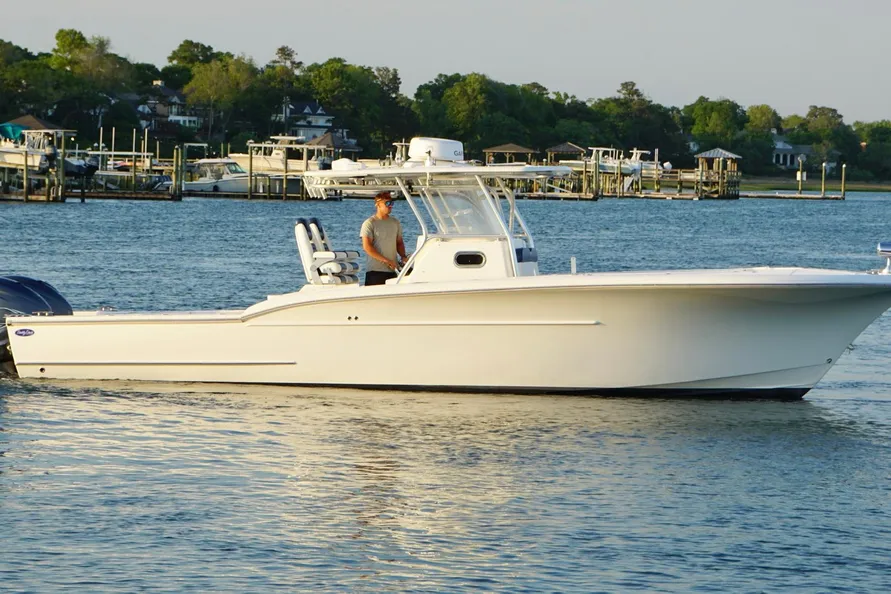 This center console power boat is available for sale at $185,000. Built in 2013, this vessel is 34ft in length overall with Yamahas. A used Buddy Davis 34 Center Console is perfect for fishing and day cruising.