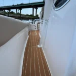 • Multiple seating areas: bow, cockpit, forward console lounge, and fold-out seating