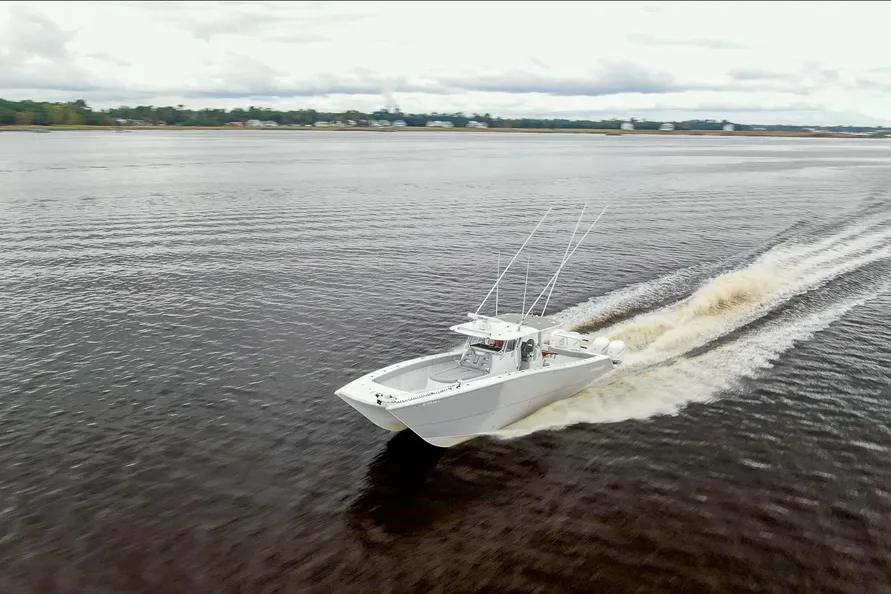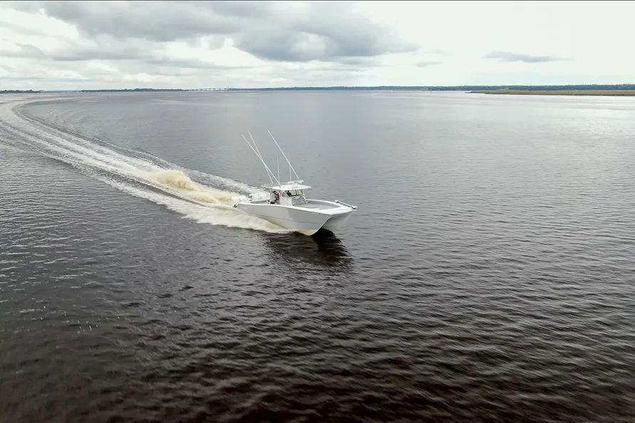 2020 Freeman 42LR 2020 Quad Mercury 400s (1000 hours) • LOA : 42’0″ • Beam : 11’9″ • Draft : 24″ • Dry Weight w/ engines : 14,500 lbs • Freshwater Tanks : 40 gallons • Fuel capacity : 800 gallons Price: $850,000 Accessories: Wrapped Gray (white underneath) Dual Simrad GPS/Depth Finder Simrad Auto Pilot Simrad Radar Rhodan Trolling Motor Flir NightVision Release Rocket Launcher Lightbar JL Sound System Under Water Lights Transom and Side Dual VHFs Mercury Vessel View Transom Livewell Carbon Fiber Outriggers and Center Rigger Trim Tabs Fresh/Raw Water Washdown Spreader Lights ETC… Trailer: 2020 Triple Axle