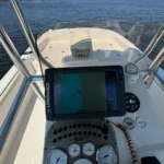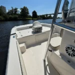 This boat is virtually new, with only 4 hours on its Suzuki 140HP 4-stroke. Outfitted with thoughtful upgrades like a black soft-top T-top with rod holders, Lowrance fishfinder, Bluetooth speakers, center bow fishing chair, and custom diamond-stitched upholstery, it’s equally ready for fishing the flats or cruising with the family. A W.C. MFG. aluminum trailer is included in the package.