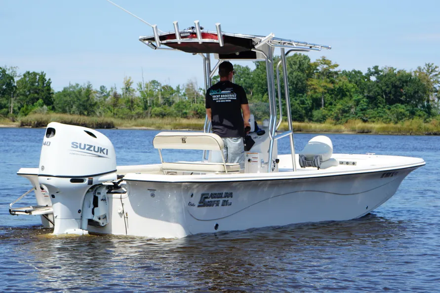 2023 Carolina Skiff 21 LS – Suzuki 140HP (Only 4 Hours), T-Top, Fishfinder, Diamond Stitch Upholstery, Trailer Included