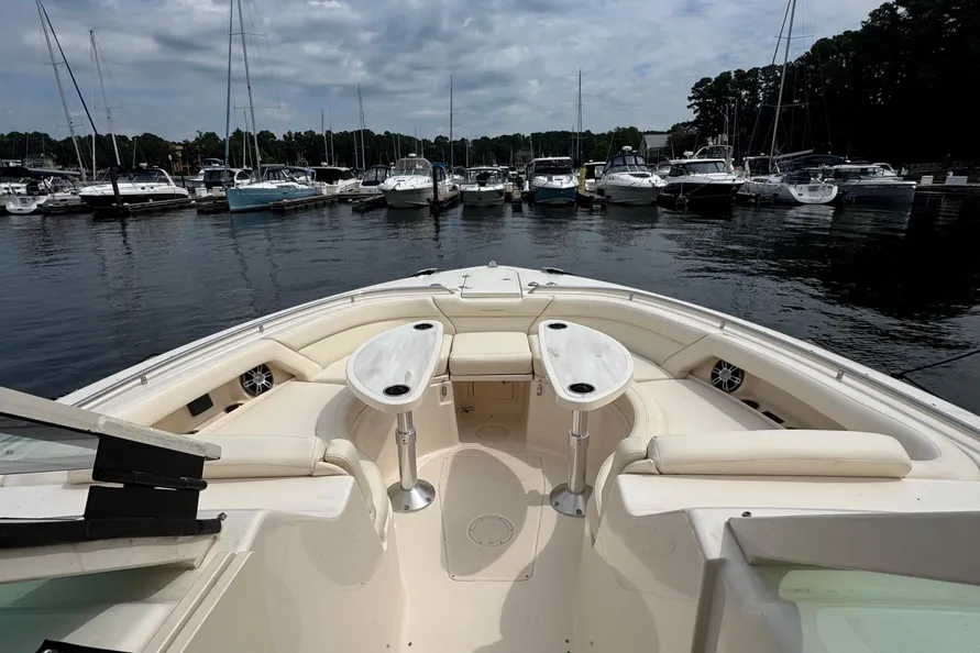 - Seating – port & starboard bow deluxe cushioned surround seating