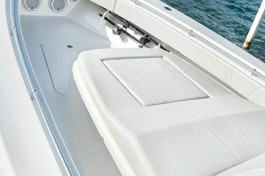 The 39 Fish around is the culmination of tournament fishing comfort and knowledge. Optimized for speed without sacrificing “fish-ability” this 39 has creature comforts, and the attention to detail that only a captain would craft. The fish around has a cabin console, and cruising speeds over 60mph. The fishability of a center console, and the convenience of a sport fish or express model.