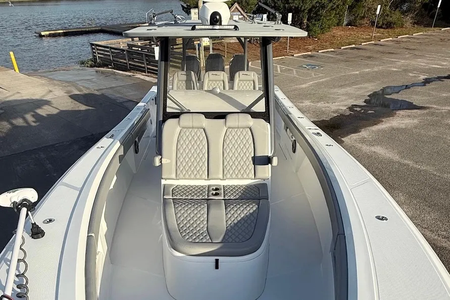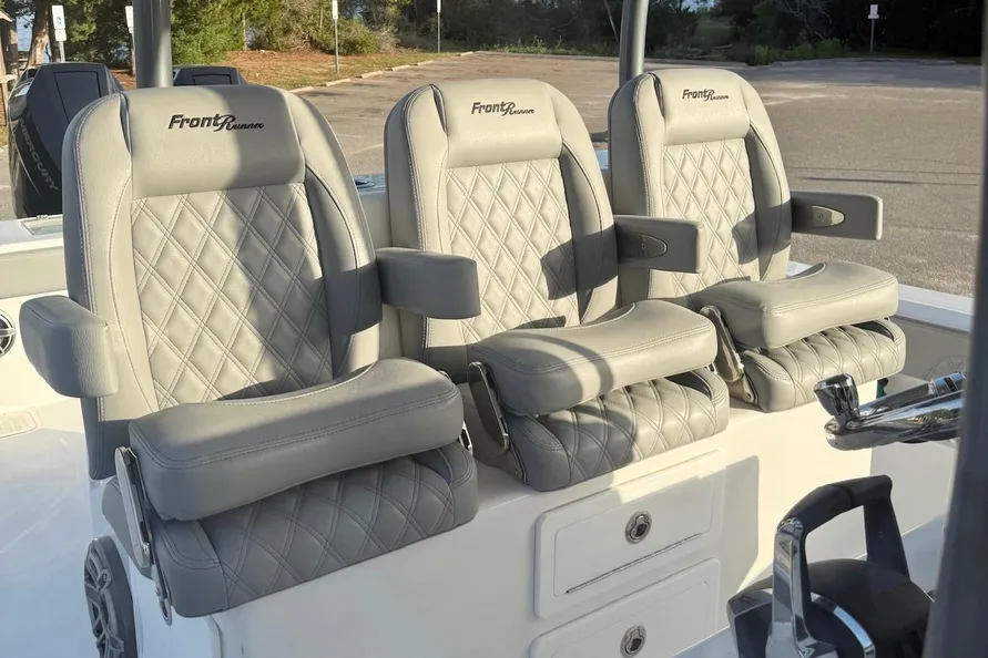 Built with classic styling, and modern innovation, the 39cc is a leader in her class. From the big bow flair to the high-performance stepped bottom, the 39cc is sure to turn heads at the dock or while conquering rough seas. She also includes an enormous space down below to escape the elements. The finest materials were used in her construction and cutting edge design and engineering were used to make this boat perform and ride just like she is named, a true Front Runner.