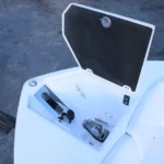 - Transom storage compartment – plumbed and insulated for use as a cooler and notched for beach anchor storage