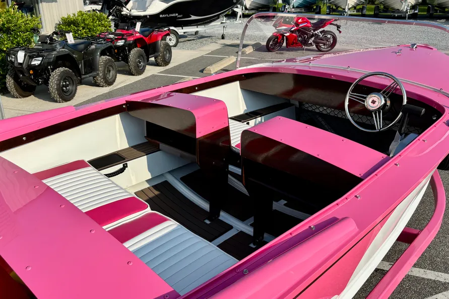 - Fiberglass helm seating pod with deluxe bucket chairs, adjustable armrests, rigging station and cooler storage